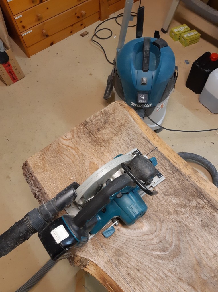 Wenn nicht im Freien gearbeitet wird, empfiehlt sich auf alle Fälle immer eine direkte Absaugung der Sägespäne. Auch, wenn der feine Staub sich trotzdem überall festsetzt… 😦