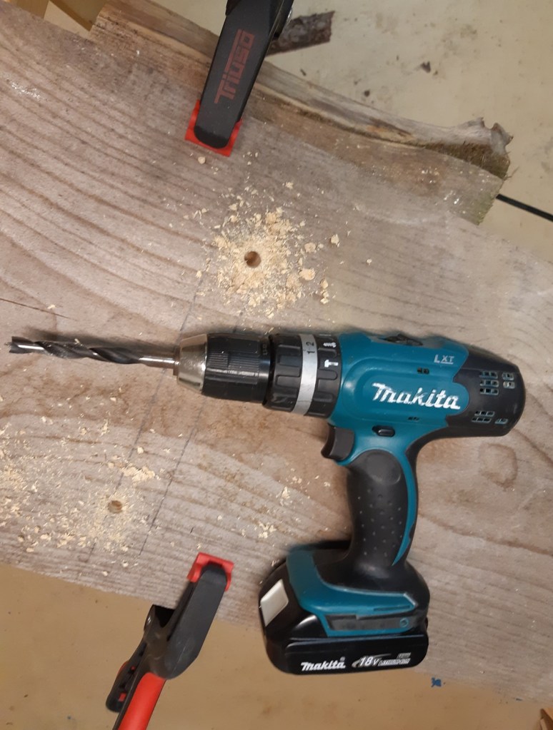 Die in den anderen Beiträgen beschriebenen Winterprojekte sind nun abgeschlossen. Damit blieb jetzt mal Zeit, um am Stuhl weiter zu bauen. In Schritt drei geht es nun darum aus den Brettern aus Schritt 2 den Stuhl, der in Schritt 1 skizziert wurde herauszuschneiden.
