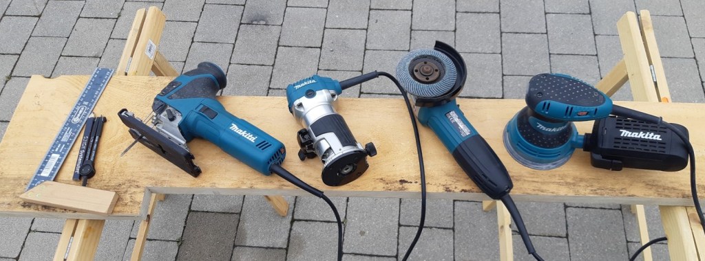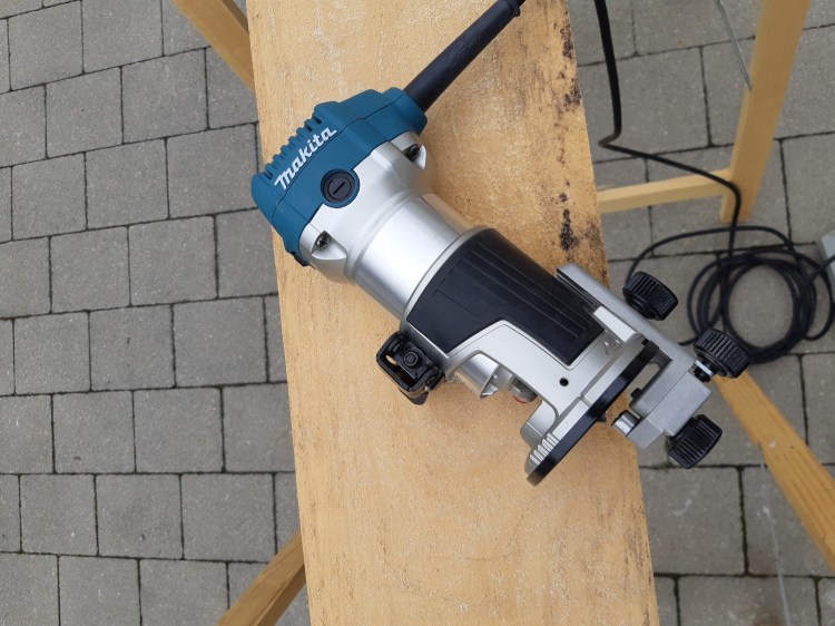 Zuerst werden die Kanten genommen. Das geht am Besten mit einer Makita Einhandfräse, kann aber natürlich auch mit Schleifpapier erfolgen.