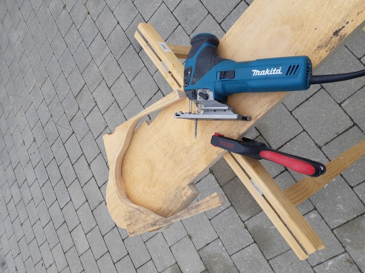Der Sitz selbst kann einen größeren Radius an den Kanten vertragen, um das Sitzen noch bequemer zu machen. Dies ist mit der Fräse nicht mehr möglich und auch bei einem Zuschnitt mit der Stichsäge von ca. 45° bleiben unschöne Kanten.