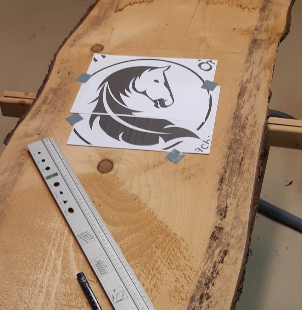 Wenn bestimmte Schriftzüge oder Logos eingearbeitet werden sollen, empfiehlt es sich, wenn man Vorlagen erstellt und auf das Sitzbrett überträgt. Dazu kann man eine Schablone ausschneiden und den Rand nachzeichnen oder das Logo einfach mit Hilfe eines Stifts durchdrücken. Die durchgepausten Punkte oder leichte Linien können anschließend mit dem Bleistift nachgezogen werden, um eine klarere Kante zum Aussägen zu haben.