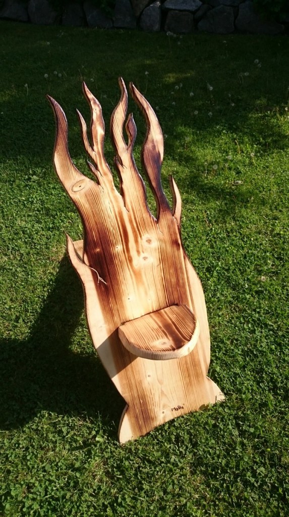 Bis einschließlich Schritt 4 sehen nun alle Stühle ziemlich gleich aus. Aber wie können Sie unterschieden werden. Das ist nun vom Geschmack eines jeden Einzelnen abhängig. Egal, ob Herzchen, Flammen, Gravur oder spezielle Ausgestaltungen mit Epoxidharz, grundsätzlich ist alles möglich! Dies hängt natürlich einerseits vom eigenen Stil und andererseits vom Arbeitsaufwand, den man noch spendieren möchte ab. In diesem Kapitel möchte ich nun ein paar Bespiele zeigen, was alles möglich ist und was ich selbst bereits ausprobiert habe.